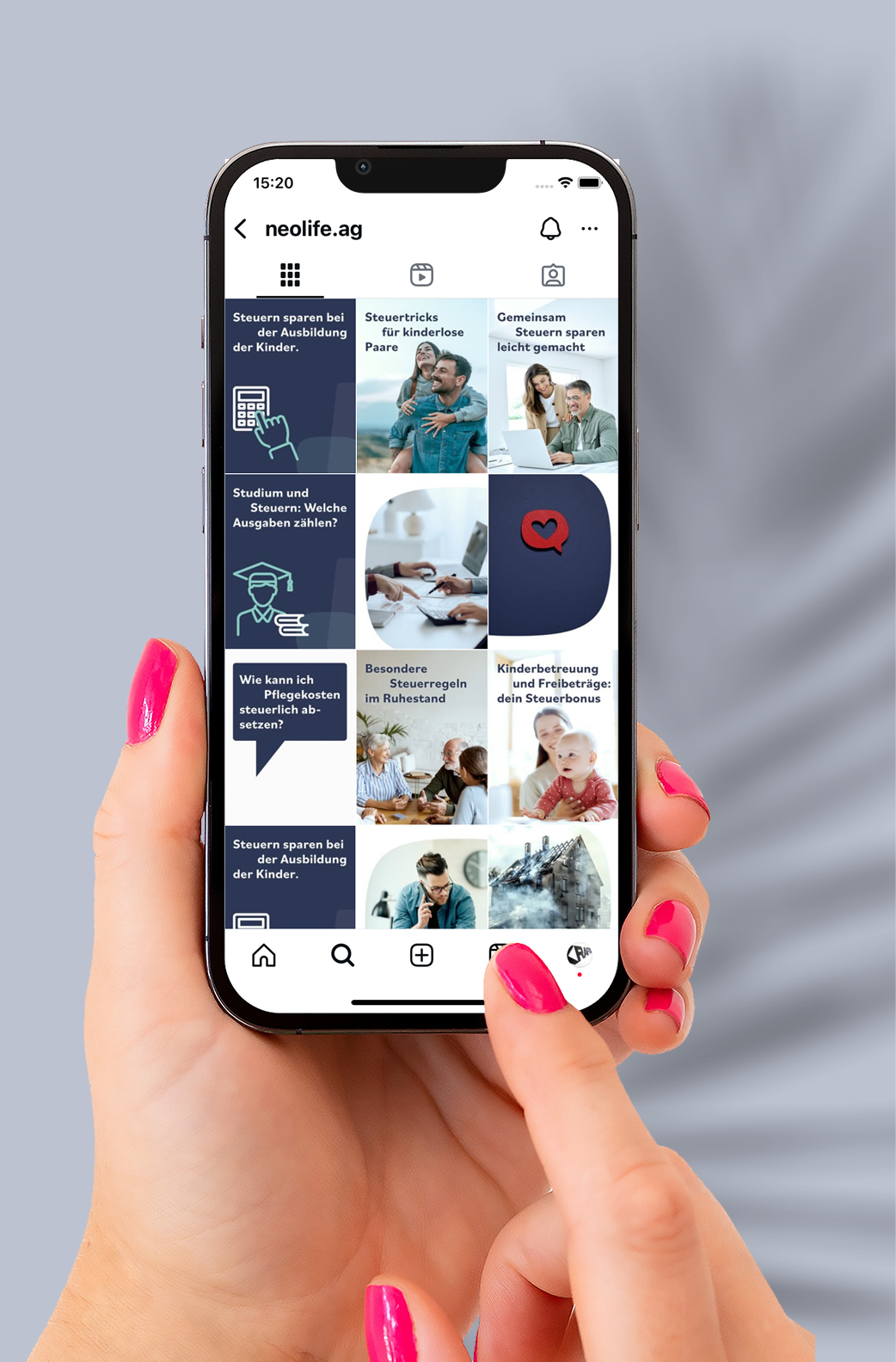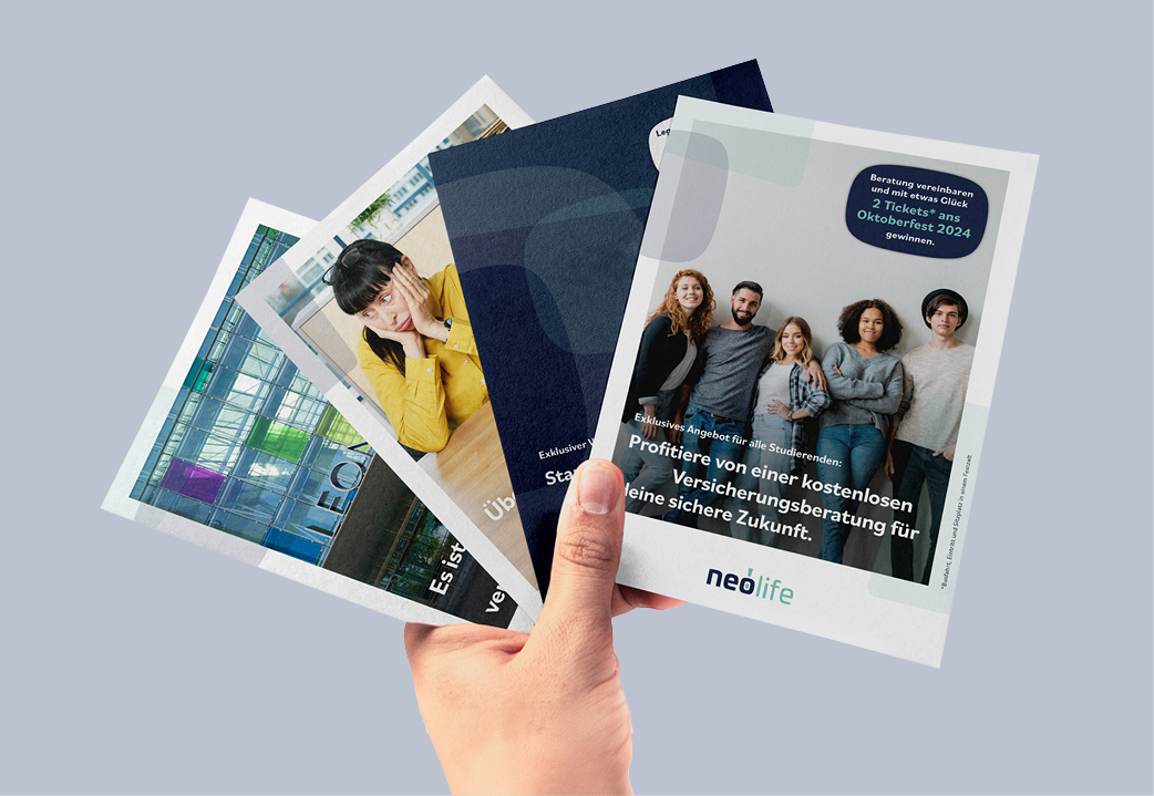 Für Neolife durften wir den Corporate Auftritt weiterentwickeln, den Inhalt und auch das Screendesign ihres Webauftritts kreieren und den digitalen Auftritt mit einem durchdachten Social Media Strategie, inklusive Blog-Writing, führen und betreuen. Mit frischen Farben, unterschiedlich aufbereiteten Posts & Stories sowie selbstverfassten Texten zu verschiedenen Versicherungsthemen haben wir eine solide Grundlage für den digitalen Auftritt geschaffen. Ergänzt wurde dies durch diverse informelle Flyer, die das Gesamtbild abrundeten.