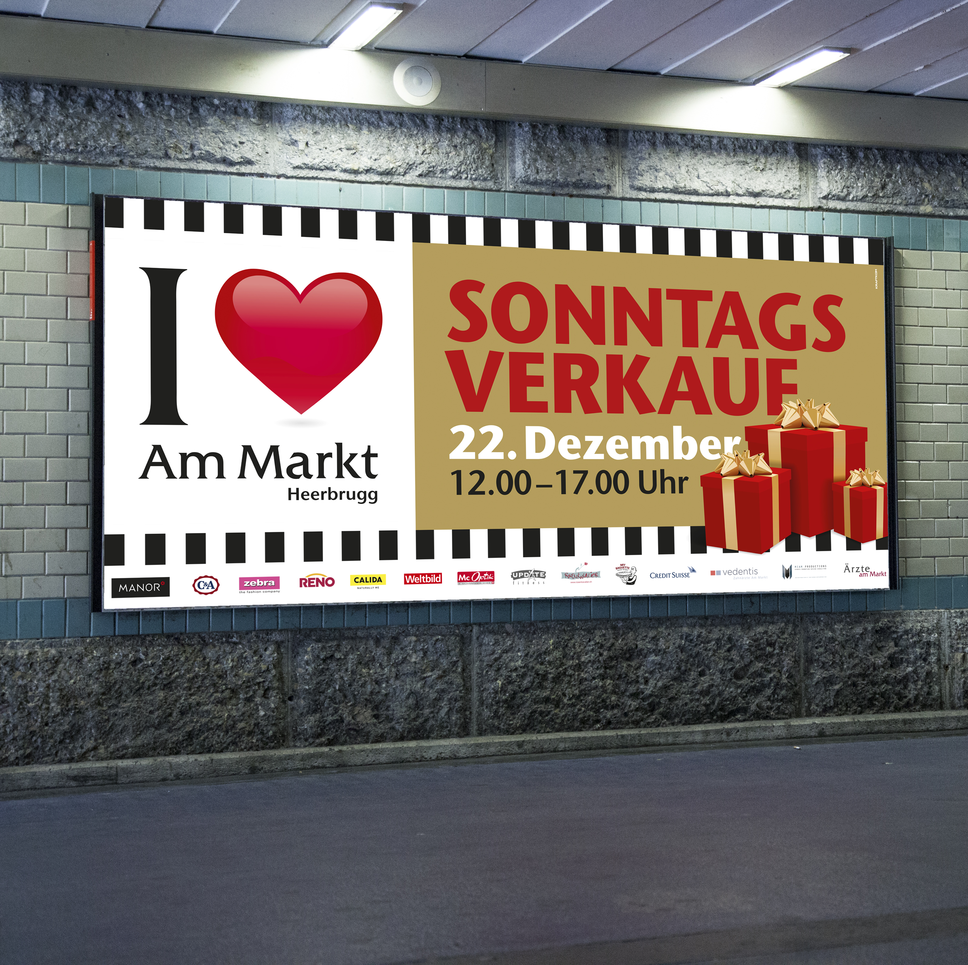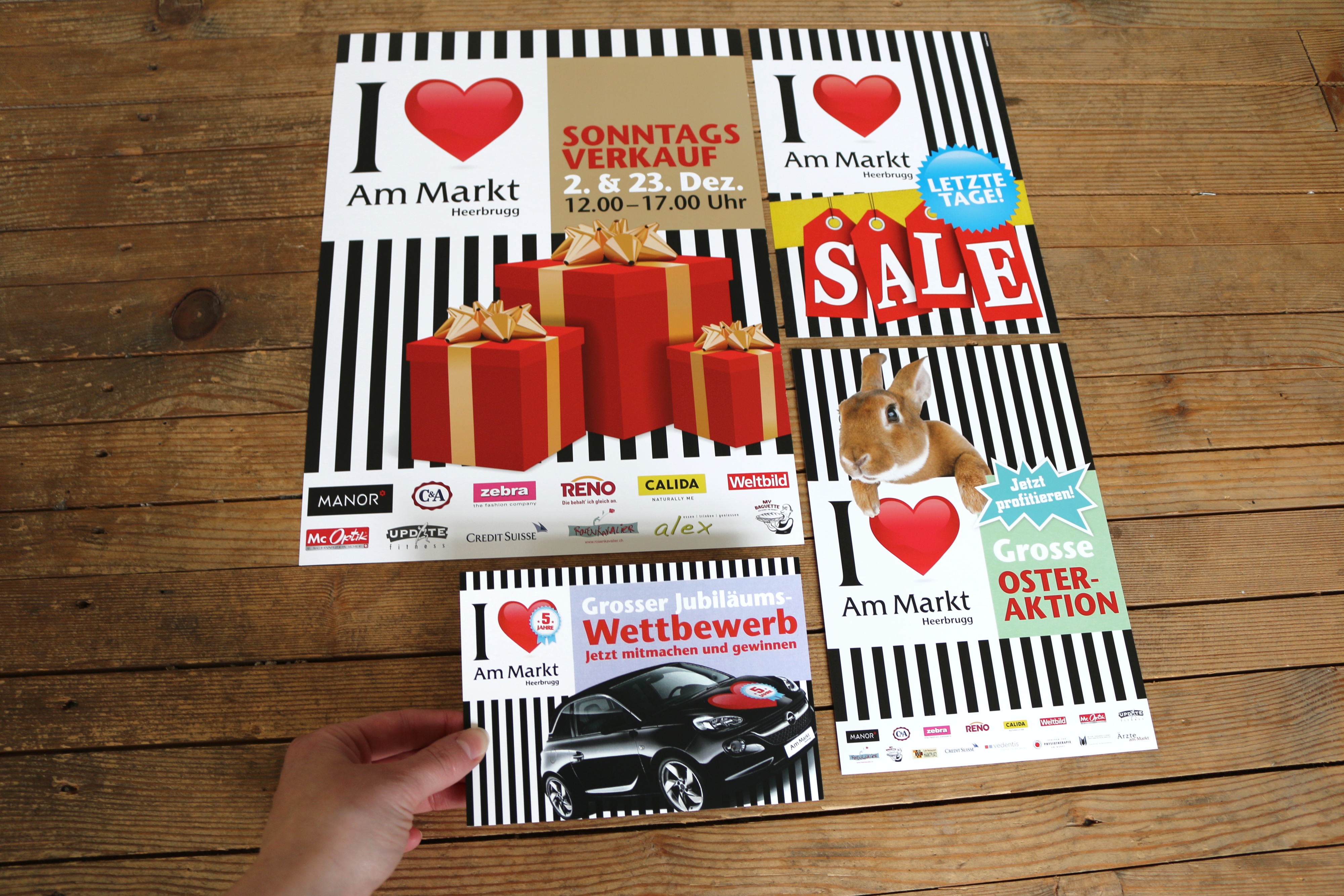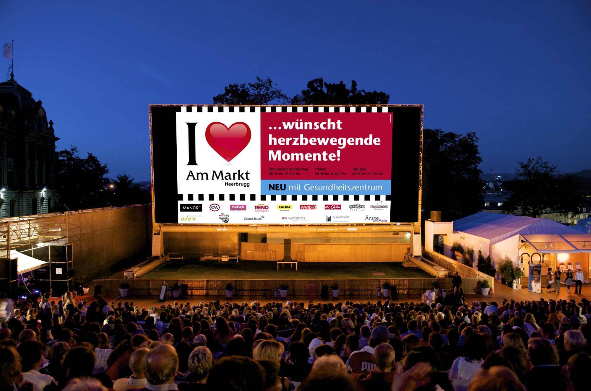 Um das Einkaufszentrum zu etablieren, wurde ein neues Logo kreiert. Das Herz als prägnantes Visual, soll dabei den gewünschten emotionalen Wert bei der Zielgruppe hervorrufen. Im Hinblick auf die originelle Architektur des Gebäudes, wurde ein Gestaltungskonzept entworfen, das einfach mit verschiedenen Botschaften gefüllt werden kann. Events und Aktionen wie Weihnachten, Sale oder Night-Shopping erhalten so ein einheitliches Erscheinungsbild mit individuellem Charakter. Das Kampagnenkonzept beinhaltet die Empfehlung, Entwicklung und Integration verschiedenster Massnahmen wie Plakate, Radiospots, Aktions-Flyer mit Coupons, Türbeschriftung, Passantenstopper, Inserate und Displaywerbung im ÖV.