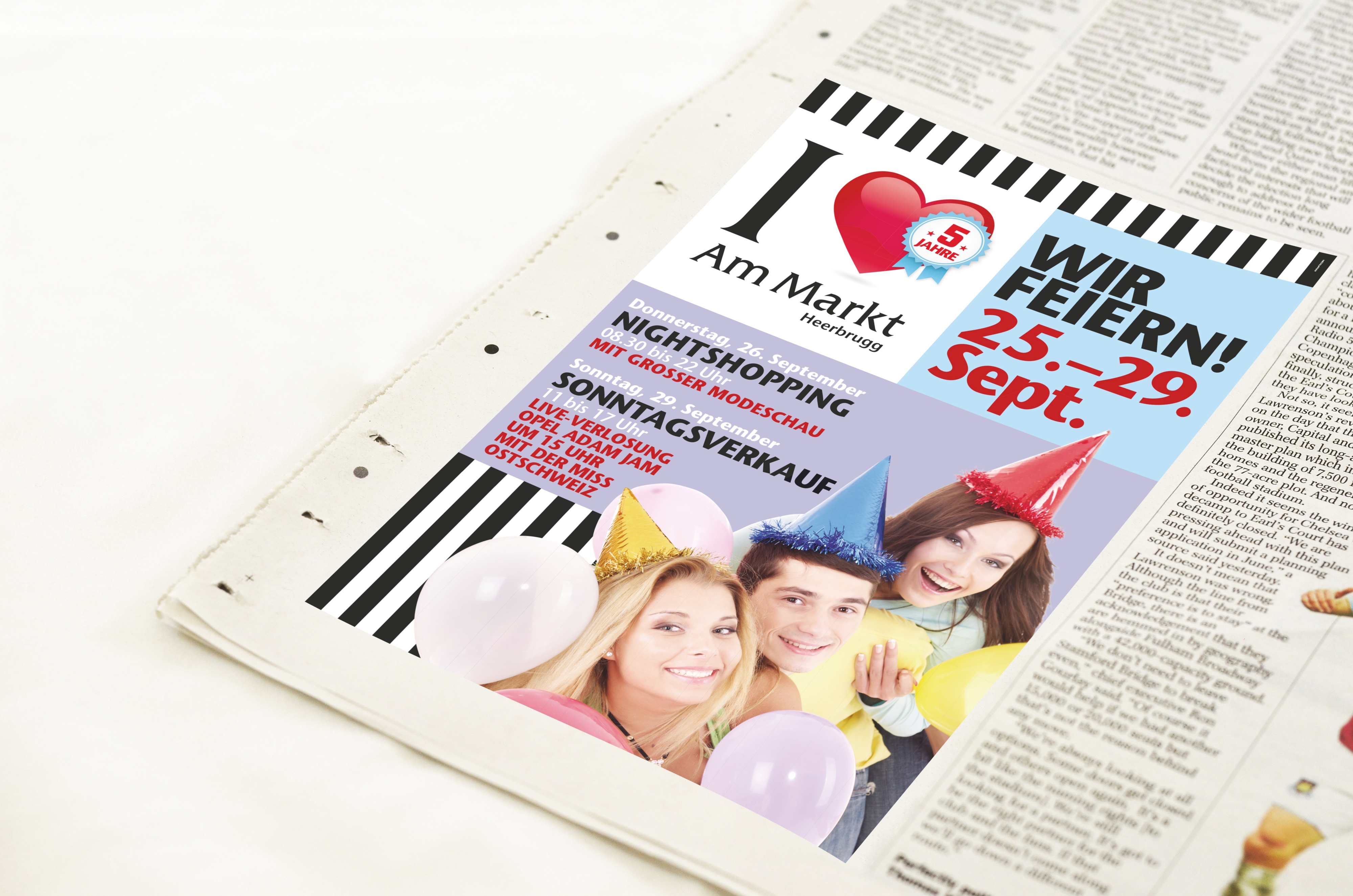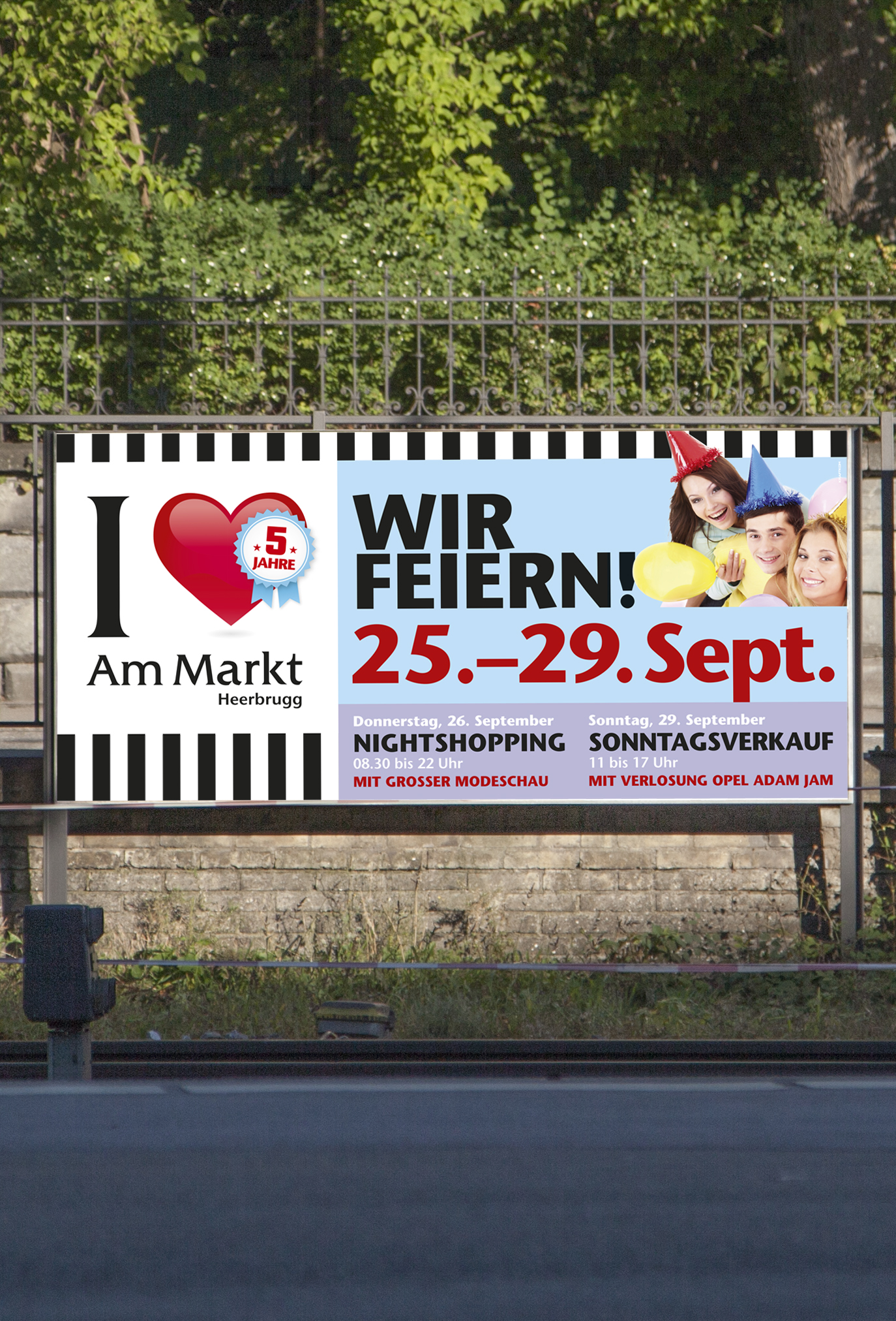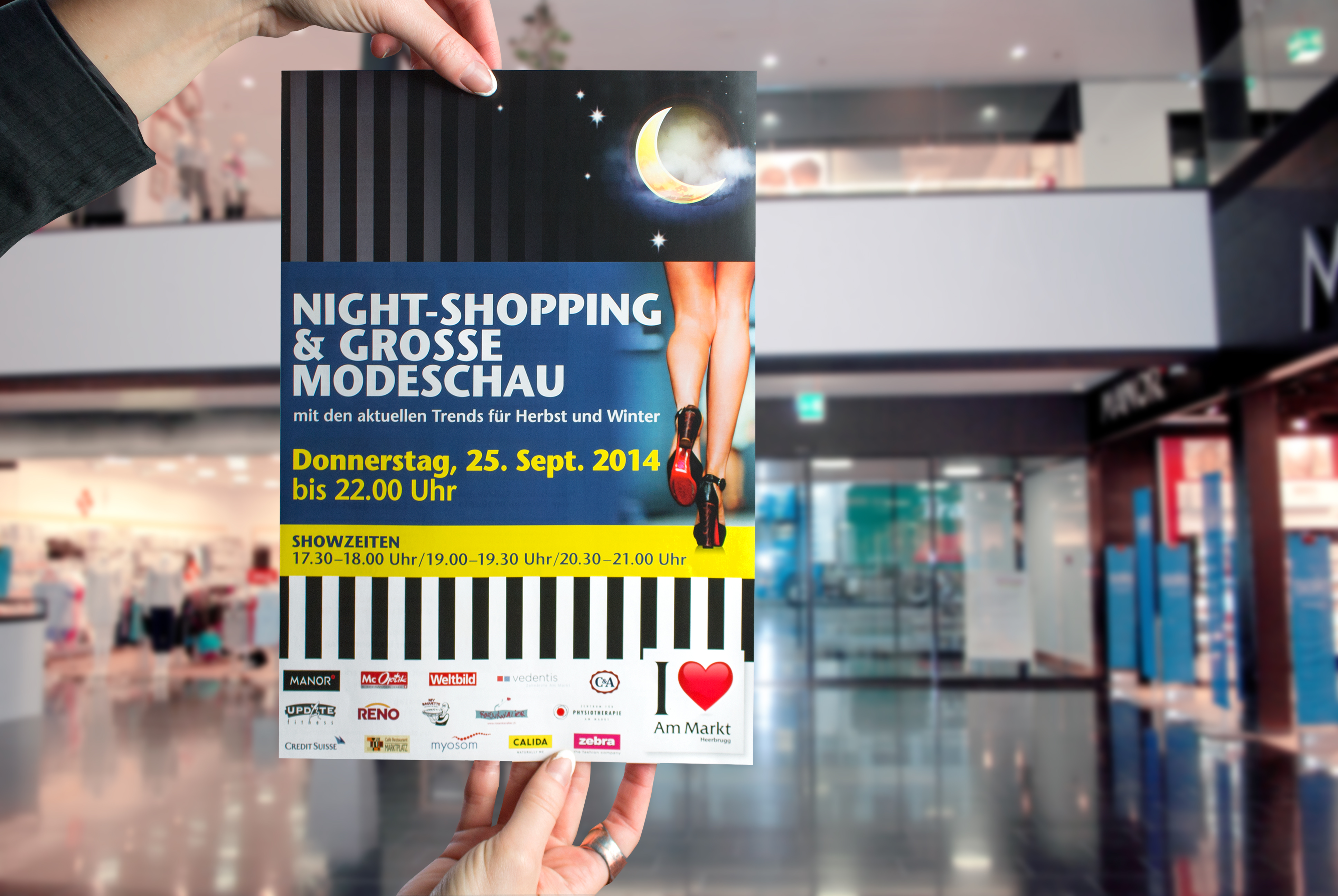 Um das Einkaufszentrum zu etablieren, wurde ein neues Logo kreiert. Das Herz als prägnantes Visual, soll dabei den gewünschten emotionalen Wert bei der Zielgruppe hervorrufen. Im Hinblick auf die originelle Architektur des Gebäudes, wurde ein Gestaltungskonzept entworfen, das einfach mit verschiedenen Botschaften gefüllt werden kann. Events und Aktionen wie Weihnachten, Sale oder Night-Shopping erhalten so ein einheitliches Erscheinungsbild mit individuellem Charakter. Das Kampagnenkonzept beinhaltet die Empfehlung, Entwicklung und Integration verschiedenster Massnahmen wie Plakate, Radiospots, Aktions-Flyer mit Coupons, Türbeschriftung, Passantenstopper, Inserate und Displaywerbung im ÖV.